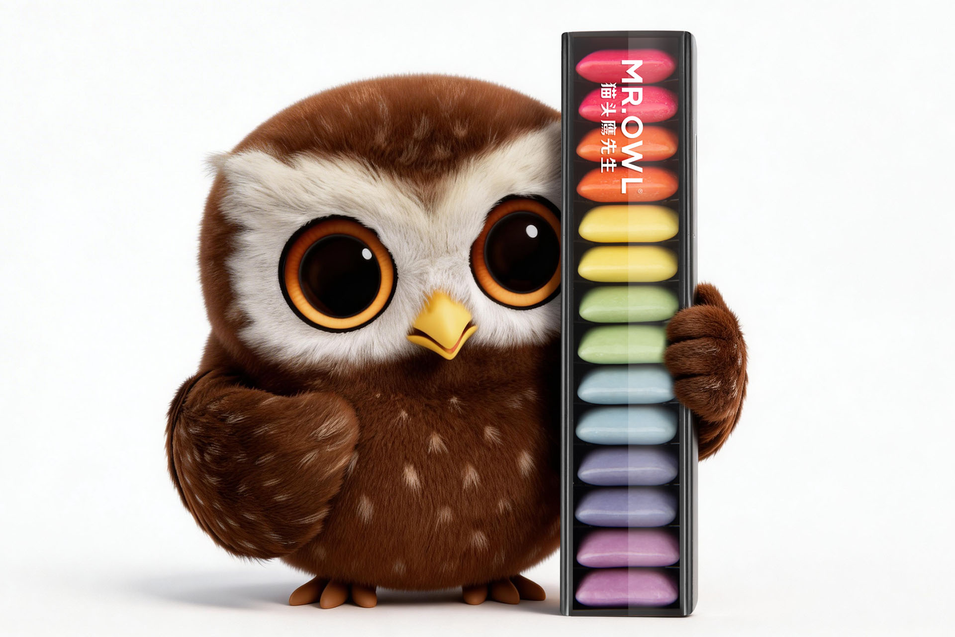 我们将猫头鹰先生的角色,重新定义为“都市清醒生活的情绪守护者”——每一颗口香糖,不只是提神醒脑,而是应对压力、疲惫、迷茫等负面情绪的微小自我调节机制,成为现代人“轻觉醒、微自愈”的日常必备。